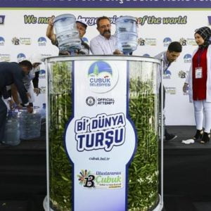 تسعى بلدية “جوبوك” في العاصمة التركية أنقرة، لدخول موسوعة غينيس للأرقام القياسية، بصنع أكبر عبوة مخلل في العالم.
