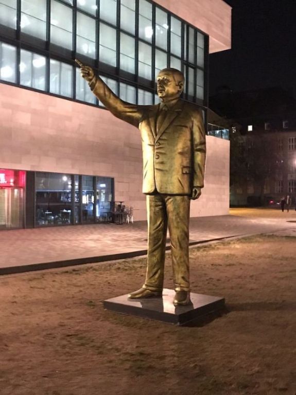 تفاجأ مواطنون ألمان في مدينة فيسبادن وسط ألمانيا، مساء يوم أمس الاثنين، بوجود تمثال للرئيس التركي رجب طيب أردوغان في إحدى ساحات المدينة المقابلة لمبنى “بينالي” للفنون المعاصرة.