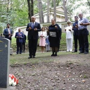 ووضع الوزير التركي إكليل زهور في المقبرة، إحياءً لذكرى الشهداء.