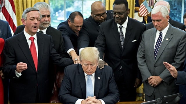 وحسب نيويورك تايمز الأمريكية، فإن الاجتماع انعقد مساء الاثنين الماضي، في البيت الأبيض بحضور ترامب وقادة إنجيليين عل مائدة طعام أقامها ترامب على شرفهم.