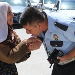 فقد قام الشرطي التركي جنيد شنكوش، بإيقاف حركة مرور السيارات، ومساعدة العجوز في عبور الشارع إلى الطرف الآخر، وتقبيل يدها بعد ذلك.