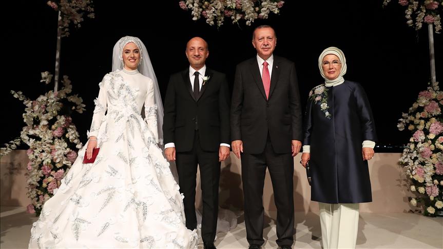 شارك الرئيس التركي رجب طيب أردوغان، مساء الجمعة، في حفل زفاف البرلماني من حزب العدالة والتنمية عن أنقرة، علي إحسان أرصلان، وشريكة حياته كبرى صاروهان.