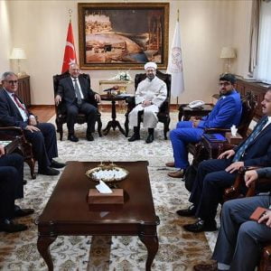 واستقبل أرباش رئيس مجلس أمناء الجامعة الإسلامية بغزة، نصر الدين صادق المزيني ورئيس الجامعة السابق د. كمالين شعت، والوفد المرافق له في مقر رئاسة الشؤون الدينية في العاصمة أنقرة.