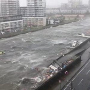 في مشهد يثير الرعب، التقطت الكاميرات لقطات مخيفة لمنازل وشاحنات تطير في الهواء بفعل أقوى إعصار يضرب اليابان منذ سنوات، كما تسبب الإعصار أيضاً بارتطام ناقلة نفط بجسر.