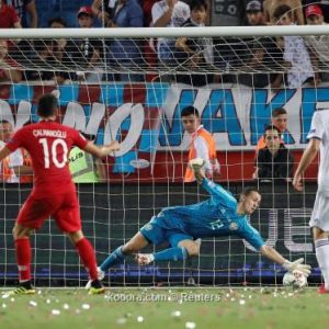 تقدم المنتخب الروسي بهدف حمل توقيع نجمه دينيس تشيريشيف في الدقيقة 13، قبل أن يتعادل سيردار عزيز لتركيا في الدقيقة 41، لينتهي الشوط الأول بالتعادل 1 ـ 1.