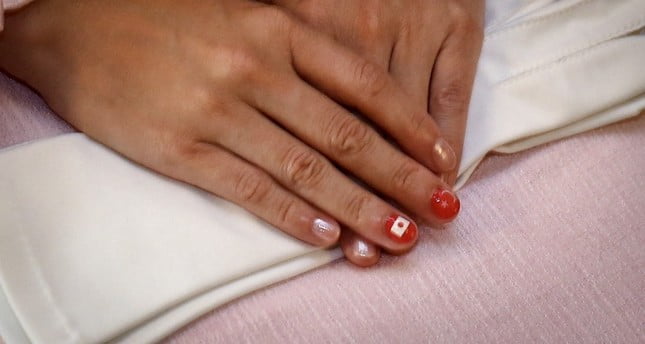 الأميرة اليابانية أكيكو ميكاسا تطلي أظافرها بعلمي اليابان وتركيا
