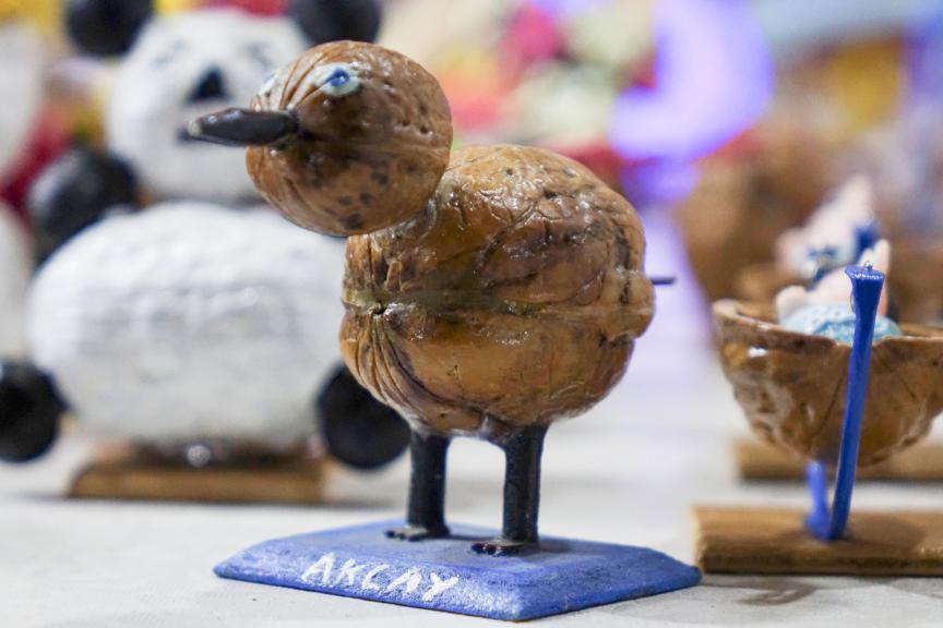 قام المواطن التركي، سليمان يوجال عقب تقاعده من عمله الرئيسي، بصناعة قطع هدايا مصغرة من قشر الجوز، ليجعل من ذلك مصدر دخل له بعد أن بدأ بها بغاية الهواية.