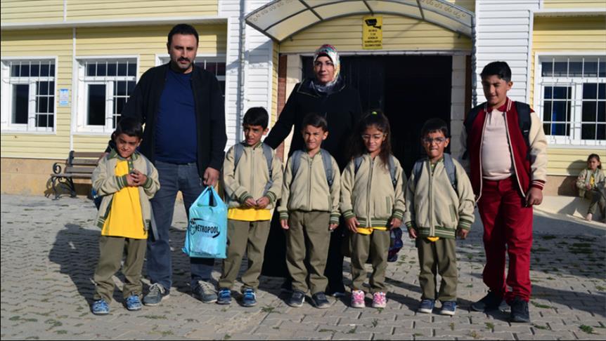 ولم يغادر الوالدان إبراهيم وأوزلام ابناءهم الخمسة حتى داخل المدرسة، وأصروا على مشاركتهم هذه اللحظات.