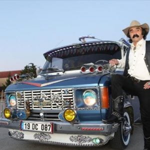 كما أن “قره قاش” يمتلك حافلة صغيرة كلاسيكية من طراز 1973، مزخرفة على نحو مبالغ، علاوة عن الحذاء الأسود بقدميه، والحلي والخواتم التي تزين يديه.