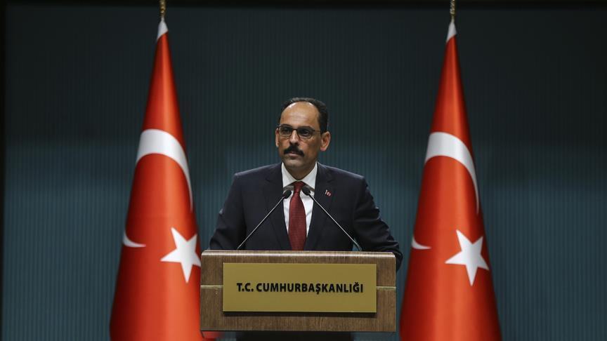 جاء ذلك في مؤتمر صحفي، عقده قالن، في المجمع الرئاسي بالعاصمة أنقرة.