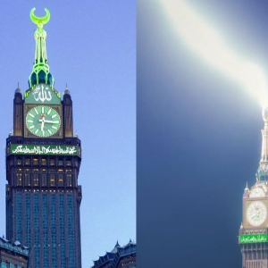 تداول ناشطون عبر “تويتر” فيديو مرعب يظهر لحظة ضرب صاعقة برج ساعة مكة المكرمة لحظة رفع آذان العشاء مساء الخميس، مما أدى لتوقفها عن العمل لأول مرة منذ تدشينها عام 2008.