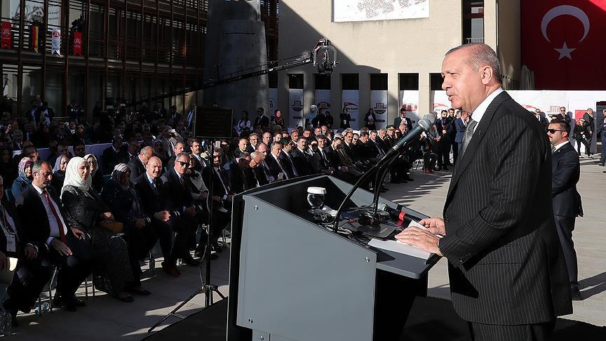 جاء ذلك في كلمة ألقاها الرئيس التركي في افتتاح المسجد المركزي في مدينة كولونيا غربي ألمانيا.