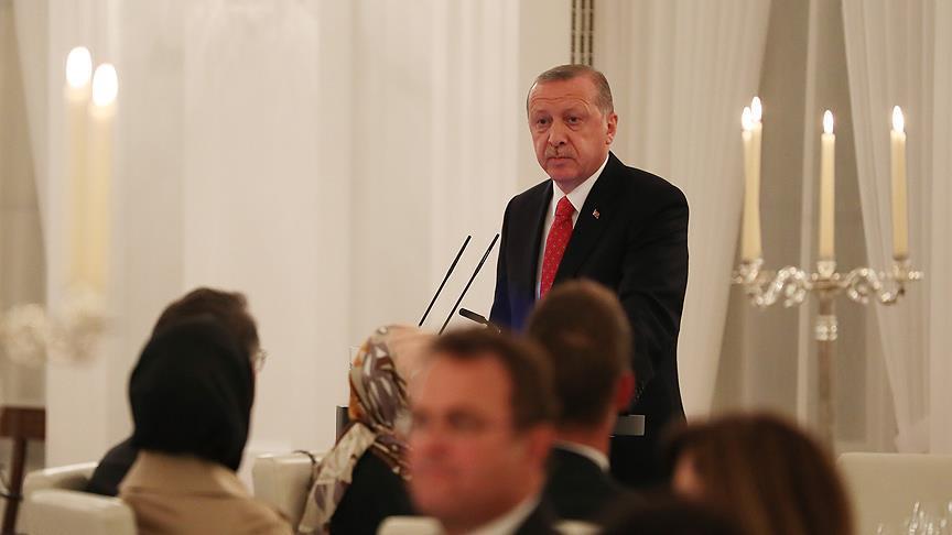 جاء ذلك في كلمة ألقاها الرئيس التركي، خلال مأدبة طعام أقامها نظيره الألماني فرانك فالتر شتاينماير، على شرفه بالعاصمة برلين.