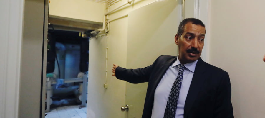 وتجوَّل القنصل في المبنى المؤلف من 6 طوابق، ومن ضمنه المصلى الموجود في المرآب والمكاتب وشبابيك التأشيرات والمطابخ والمراحيض وغرف التخزين والأمن، وفتح خزانات الملفات، وأزاح الألواح الخشبية التي تغطي وحدات تكييف الهواء.