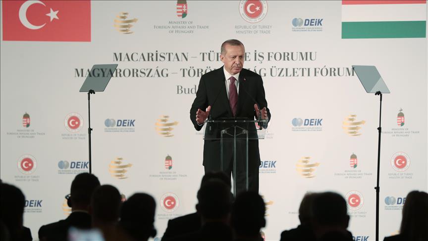 جاء ذلك في تصريحات للرئيس التركي، خلال مشاركته في منتدى الأعمال التركي المجري بالعاصمة المجرية بودابست.