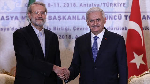 التقى رئيس البرلمان التركي بن علي يلدريم الاثنين، رئيس مجلس الشورى الإيراني علي لاريجاني.