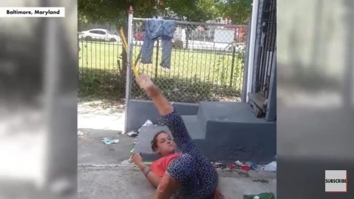 وعلّقت “نيويورك بوست” على الفيديو: التقط هذا المشهد المحبط في ولاية ماريلاند عندما تنبّه أحد السكان الى امرأة تقوم بحركات غريبة بالقرب من منزل مهجور.