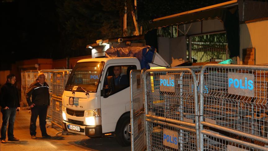 أفادت مصادر صحفية، بأن سيارة تابعة للقنصلية السعودية وصلت مساء الأحد، إلى مدخل مبنى القنصلية في إسطنبول، وتم إنزال 3 صناديق سوداء كبيرة مرقمة، مكتوب عليها باللغة الانجليزية “شخصي”.