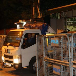 أفادت مصادر صحفية، بأن سيارة تابعة للقنصلية السعودية وصلت مساء الأحد، إلى مدخل مبنى القنصلية في إسطنبول، وتم إنزال 3 صناديق سوداء كبيرة مرقمة، مكتوب عليها باللغة الانجليزية “شخصي”.