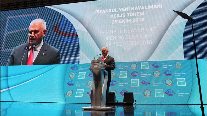 وتابع يلدريم: هذا الإنجاز يبرز قوة حضارتنا. أليس هدف الجمهورية التركية هو الحفاظ على وحدة وطننا وتضامن شعبنا ووحدة دولتنا ورفرفة علم بلادنا في السماء؟ هذا المطار بكل مجده يقف أمامنا كإنجاز يحول هدفنا إلى حقيقة”.