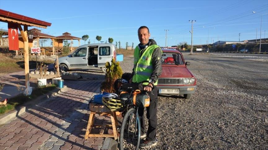 بدأ التركي علي فؤاد غولشان رحلة على متن دراجته الهوائية، سيقطع خلالها 550 كيلو مترا، وذلك من أجل لفت الانتباه إلى طيور “حبارى كبرى”، المهددة بالانقراض.