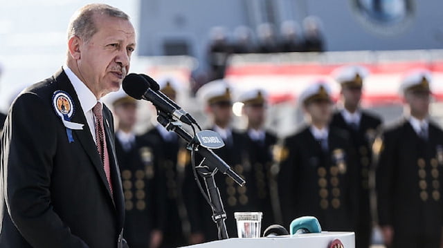 تصريح أردوغان هذا جاء في خطاب ألقاه خلال مشاركته في مراسم تسليم الفرقيطة “بورغازأدا” تركية الصنع إلى قيادة القوات البحرية في مدينة إسطنبول.