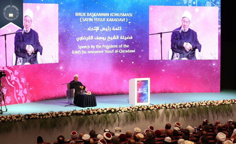 وفي كلمة ألقاها بافتتاح فعاليات الجمعية العمومية لــ”الاتحاد العالمي لعلماء المسلمين” في دورتها الخامسة، التي انطلقت، مساء السبت، في مدينة إسطنبول، أضاف القرضاوي: “كان خاشقجي يخاف أن يسجنوه حينما دخل القنصلية، لكن لم يكن يظن أن هناك أناس ستقتله، وقتلوه كما بينت السلطات في تركيا أنه مات مخنوقاً”.