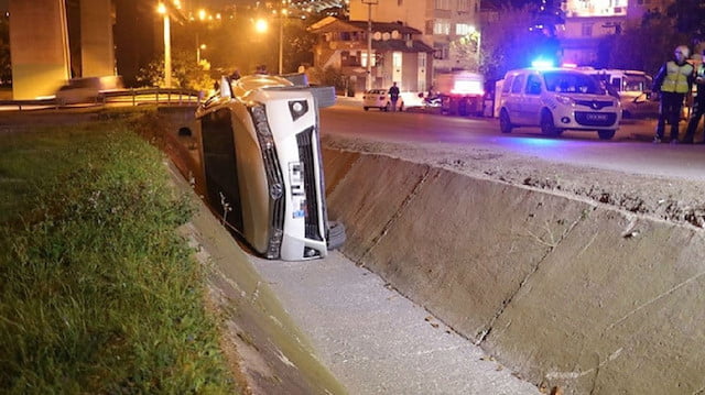 نشب شجار بين زوجين داخل سيارة بمقاطعة إزميت التابعة لولاية كوجالي شمال غربي تركيا لفقد الزوج سيطرته على عجلة القيادة وتهوي بهم السيارة في إحدى القنوات المائية، لكن الزوجين خرجا من السيارة دون أن يصبهم أي أذى.
