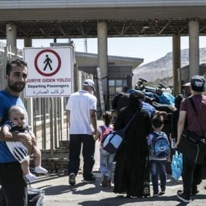 وتتوافد العائلات السورية المقيمة في ولايات تركية مختلفة إلى بوابة “جلوه غوزو” الحدودية التركية المقابلة لبوابة “باب الهوى” على الطرف السوري.