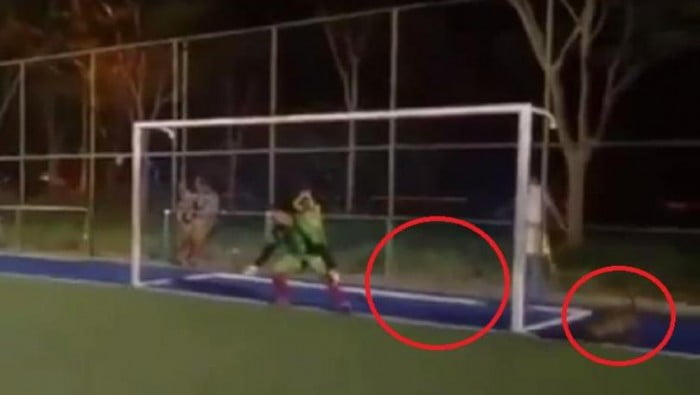 ويظهر الفيديو، كلبا يتجول قرب القائم الأيسر للمرمى قبل تنفيذ اللاعب لركلة جزاء، وقرر أن يدخل الملعب لحظة تنفيذ الركلة ليتصدى بالخطأ لركلة الجزاء وسط صيحات وتشجيع الحاضرين، لا سيما أن اللاعب خدع الحارس ولعب الكرة إلى الزاوية اليسرى بينما ذهب الحارس في الاتجاه المعاكس.