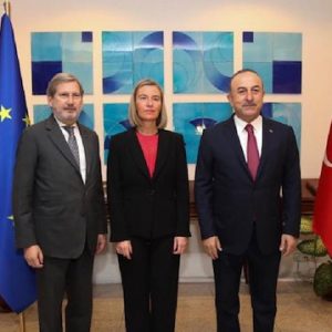 وجمع الاجتماع كلا من وزير الخارجية التركي مولود تشاووش أوغلو، وممثلة الشؤون الخارجية والسياسة الأمنية للاتحاد، فيديريكا موغريني، والمفوض الأوروبي المكلف بسياسة الجوار ومفاوضات التوسع يوهانس هان.