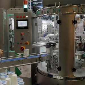 وفي شركة “ديزاين ماكينة”، رصدت عدسة الأناضول صناعة اللبن وتعبئته وتغليفه كاملا في آلة واحدة، حيث تقوم الآلة بصب اللبن داخل الكؤوس البلاستيكية، ومن ثم تستمر في إلقاء الأغطية على هذه الكؤوس، وبعدها تقوم بإلصاق الأغلفة بشكل محكم ثم إخراجها من الآلة بشكل منتظم.