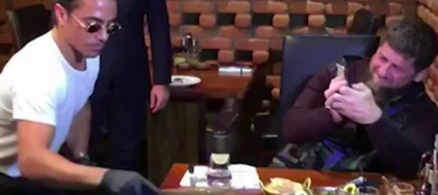 هذه المرة، كان الضيف الذي حلّ على مطعم نصرت في دبي الإماراتية، رئيس الشيشان رمضان قديروف الذي وثّق بنفسه لحظات تقطيع «حبيب الملح» لعشائه على الطاولة.