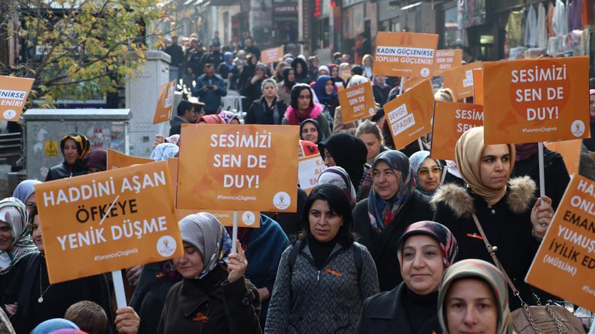 نظّم الجناح النسوي لحزب العدالة والتنمية التركي، الأحد، مسيرات في سائر الولايات، بمناسبة اليوم العالمي للقضاء على العنف ضد المرأة.