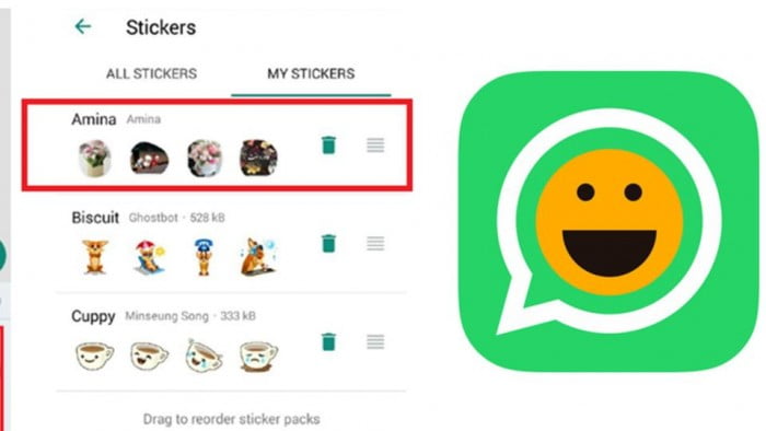 هناك 12 حزمة ملصقات مقدمة من الشركة، كما أن هناك رابط لتنزيل حزم الملصقات المميزة مباشرة من متجر غوغل بلاي Google Play، ولكن الجديد الآن أنه يمكنك إنشاء ملصقات خاصة بك ويمكنك أيضًا تحويل صورك الشخصية لملصق تستخدمه في دردشات واتساب مع أصدقائك.