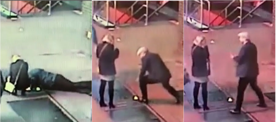 ويُظهر مقطع فيديو قصير، التقطته كاميرات المراقبة ونشرته شرطة نيويورك، الرجل في حالة ارتباك واضحة، ويداه تتحرك أمامه مثل مُقدِّم عروض كوميدية يتوسل إلى حشد من الجمهور من أجل الضحك بعد نكتة سخيفة.