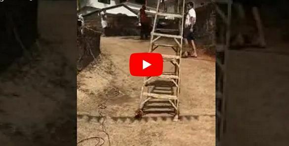 وثق سكان ولاية كيرالا الهندية مقطعا مصورا يرصد “سلّما” يسير في الشارع.