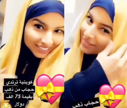 أثار مقطع فيديو نُشِر على مواقع التواصل الإجتماعيّ، لفتاة قيل إنها كويتية، جدلاً واسعاً، بعدما ظهرت وهي ترتدي حجاباً مصنوعاً من الذهب الخالص عيار 22 قيراط.