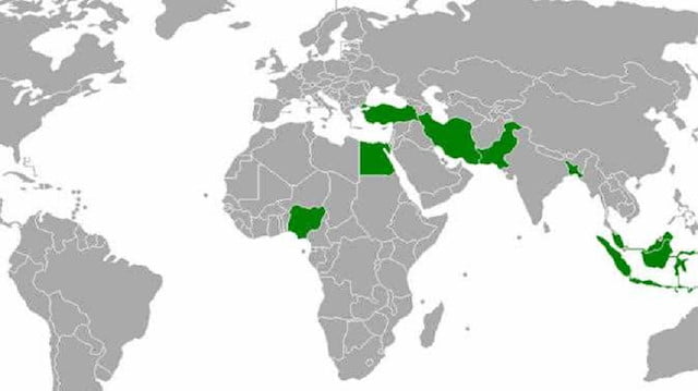 وتضم المجموعة دول تركيا، وإندونيسيا، وماليزيا، وبنغلاديس، وإيران، ومصر، ونيجيريا، وباكستان.