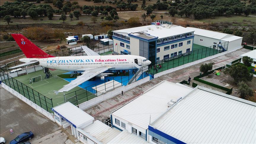 تتفرد مدرسة في ولاية إزمير غربي تركيا، بوجود طائرة حقيقية في حديقتها، يستطيع الطلبة الاستمتاع برحلات جوية في قمرة قيادتها عبر تقنية المحاكاة، كما يتلقون في داخلها دروسهم، ويستخدمونها لأداء عدد من الألعاب.