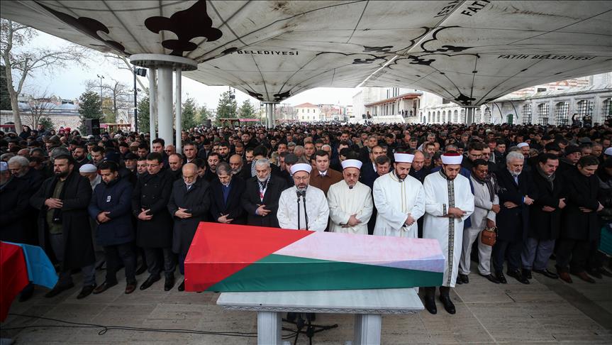 صلاة الجنازة في مسجد الفاتح على القنصل الفلسطيني الراحل في اسطنبول عبدالكريم الخطيب (ابو مراد)