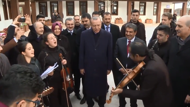 ونشرت وسائل إعلام تركية، مقطع فيديو وثق لحظة عزف وغناء مجموعة من الموسيقيين الأغنية المفضلة للرئيس التركي.