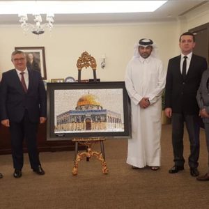 وأعرب عن أمله في “عرض هذا المجسم الفني في مزاد خيري يعود ريعه إلى أسر الشهداء في فلسطين.”