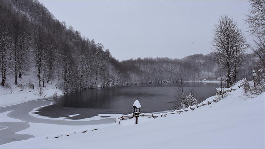 وتجمّد قسم من بحيرة “أولوغول” بسبب انخفاض درجات الحرارة مع تساقط الثلوج، حيث بدء هواة التصوير يلتقطون الصور في محيط البحيرة التي تتوسط المحمية.