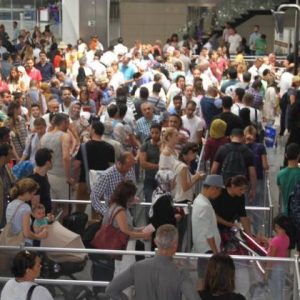 وبلغت وتيرة الازدحام ذروتها مع ظهيرة الجمعة، خصوصا لدى بوابات ختم جوازات السفر، وأجهزة الكشف “إكس-راي”.