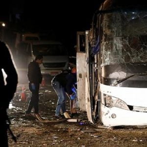 وفي وقت سابق، وقع تفجير بحافلة سياحية قرب منطقة الأهرامات، غرب القاهرة، وأعلنت السلطات المصرية مقتل ثلاثة أشخاص بينهم سائحان ومشرف الحافلة المصري، وإصابة 11 آخرين.