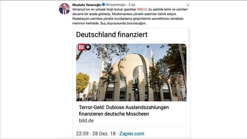 جاء ذلك في إطار ردود الفعل على تقرير نشرته الصحيفة المذكورة بعنوان “كيف يموّل الإرهاب مساجد ألمانيا”، مرفقًا بصورة لمسجد تابع للاتحاد الإسلامي التركي للشؤون الدينية (ديتيب).