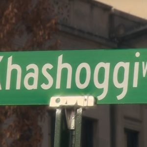ظهرت لوحة عليها “شارع خاشقجي” عند دوار دوبون الشهير في قلب العاصمة واشنطن، وقد ثُبتت اللوحة على قاعدة يصعب نقلها أو تحريكها، ولا يُعرف حتى الآن ما إذا كان الشارع قد سُمي باسم خاشقجي تنفيذا لقرار رسمي من بلدية المدينة أم بمبادرة غير رسمية.