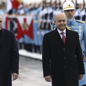 استقبل الرئيس التركي رجب طيب أردوغان، اليوم الخميس، نظيره العراقي برهم صالح، في العاصمة أنقرة، بمراسم استقبال رسمية.