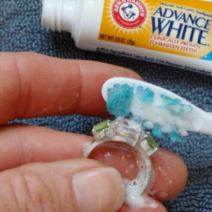 إذا كان لديكي خاتم من ألماس لا يتألق كما هو معتاد ، فقد يكون الوقت قد حان لإعطائه المزيد من اللمعان، بوضع معجون الأسنان على الفرشاة وفرك خاتم الألماس حتى يضيء من جديد.